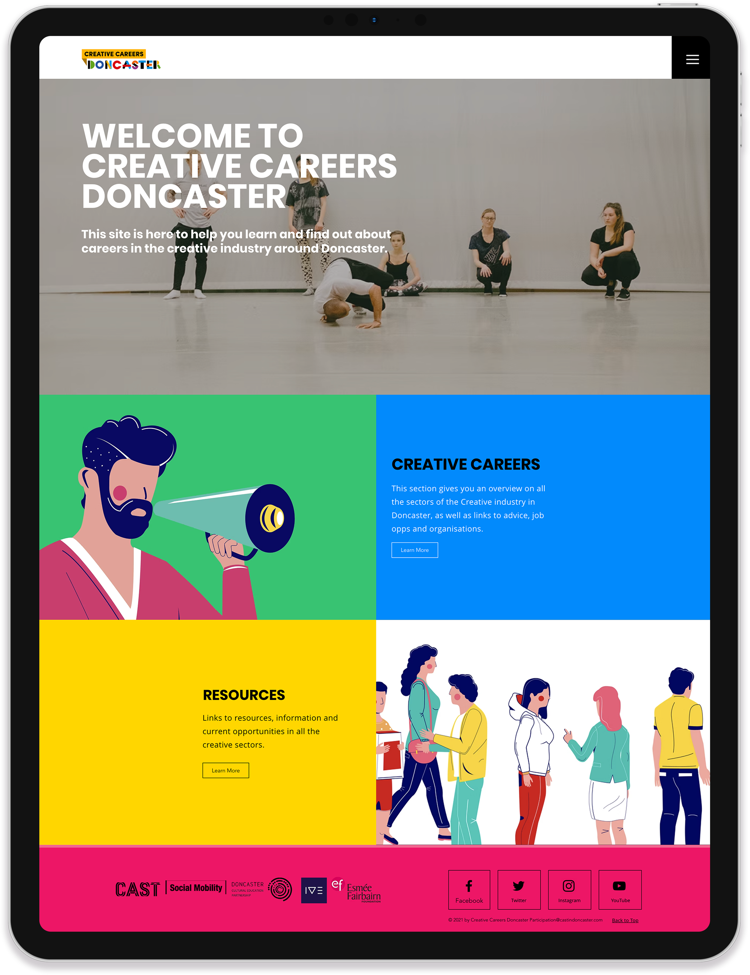 Creative Doncaster is a digital platform designed to help young people explore and access careers in the creative industries. The website brings together guidance, real world insight, and local resources into a clear, searchable experience.