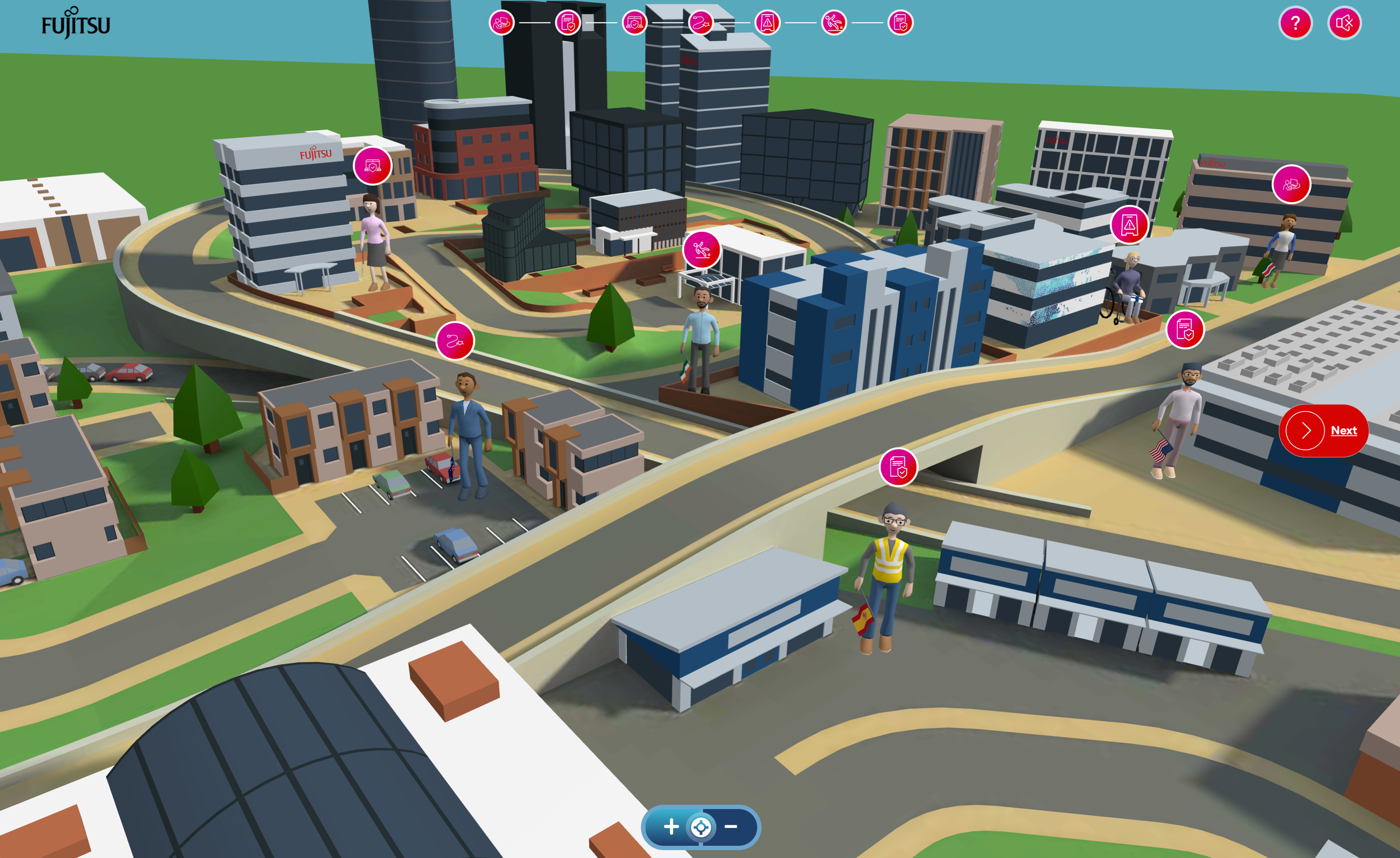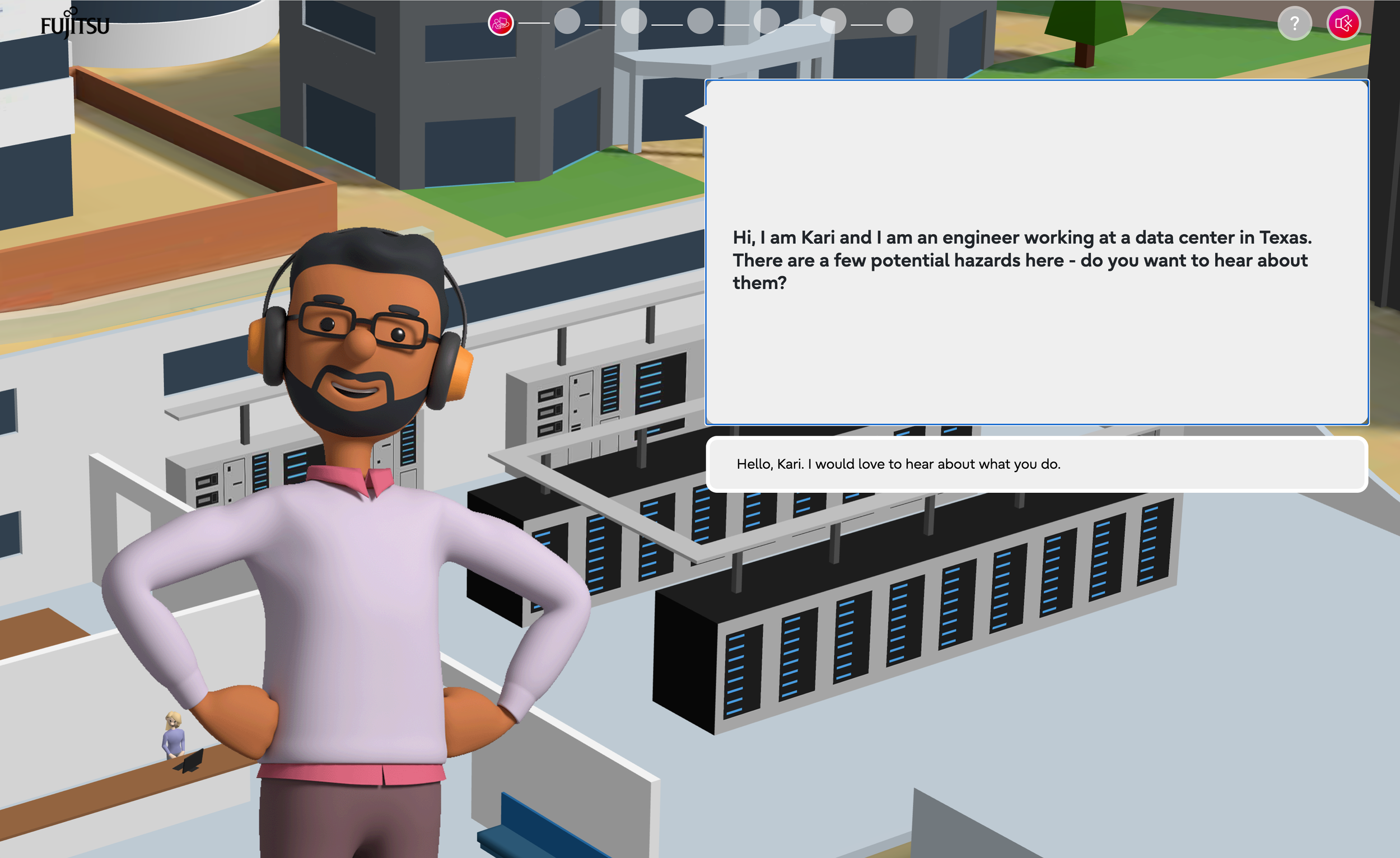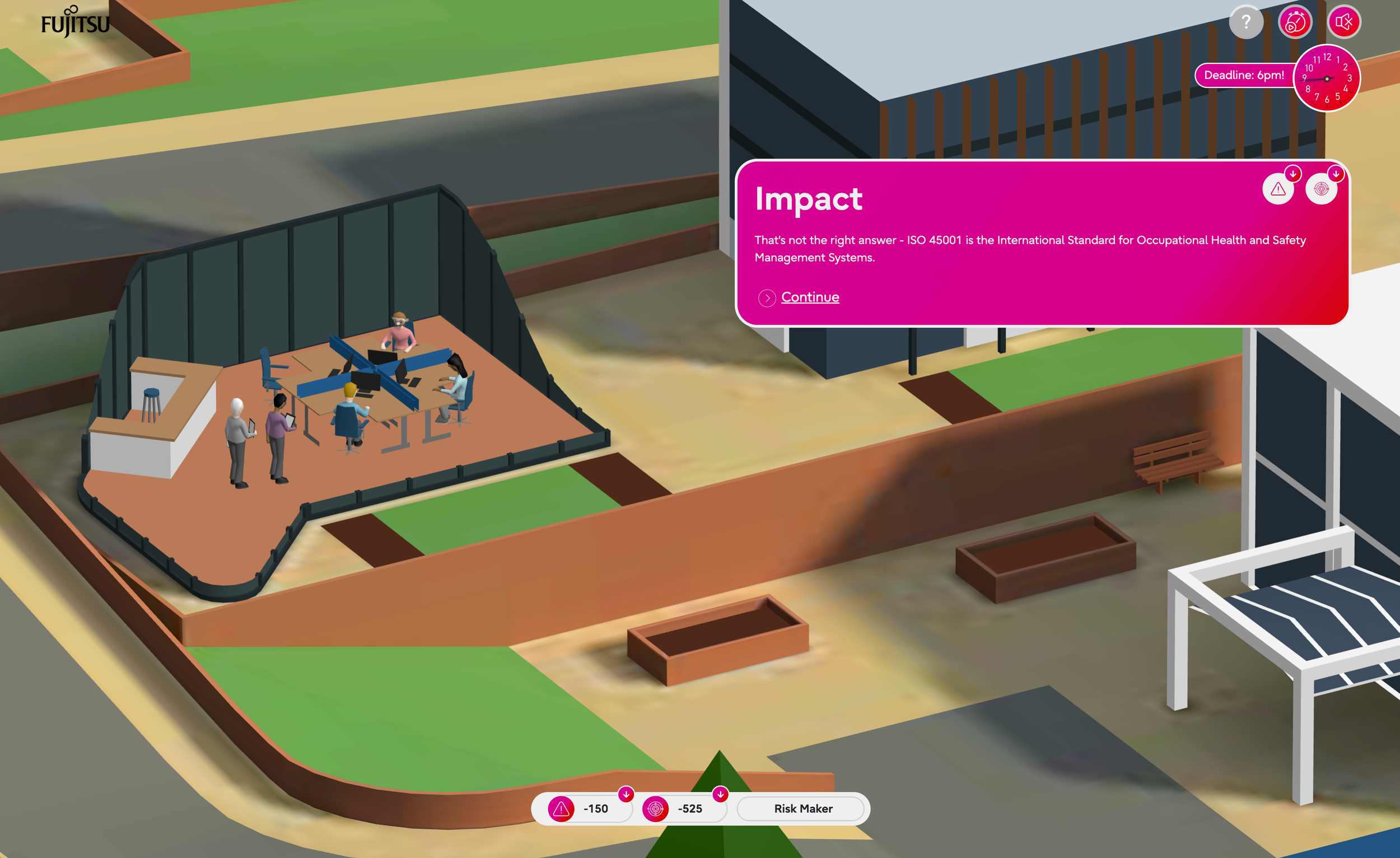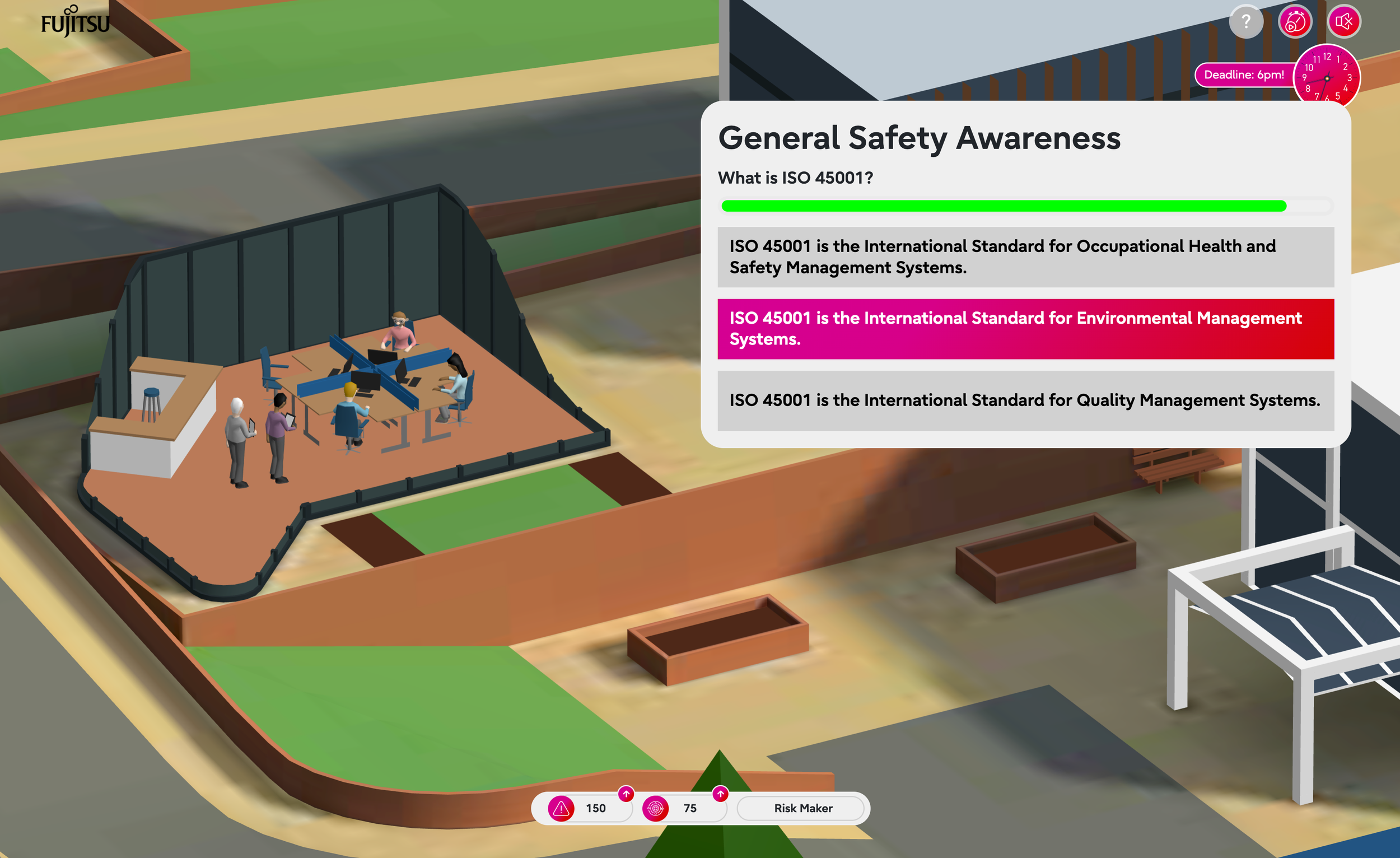 Safety City is an immersive virtual learning product based on the global operations of Fujitsu. The platform uses a simulated environment to help learners understand and apply health and safety principles in realistic, scenario based contexts.