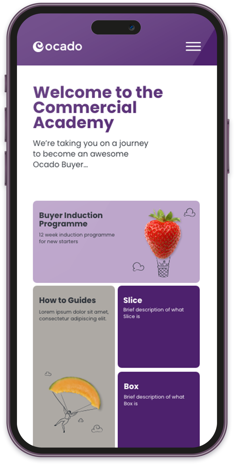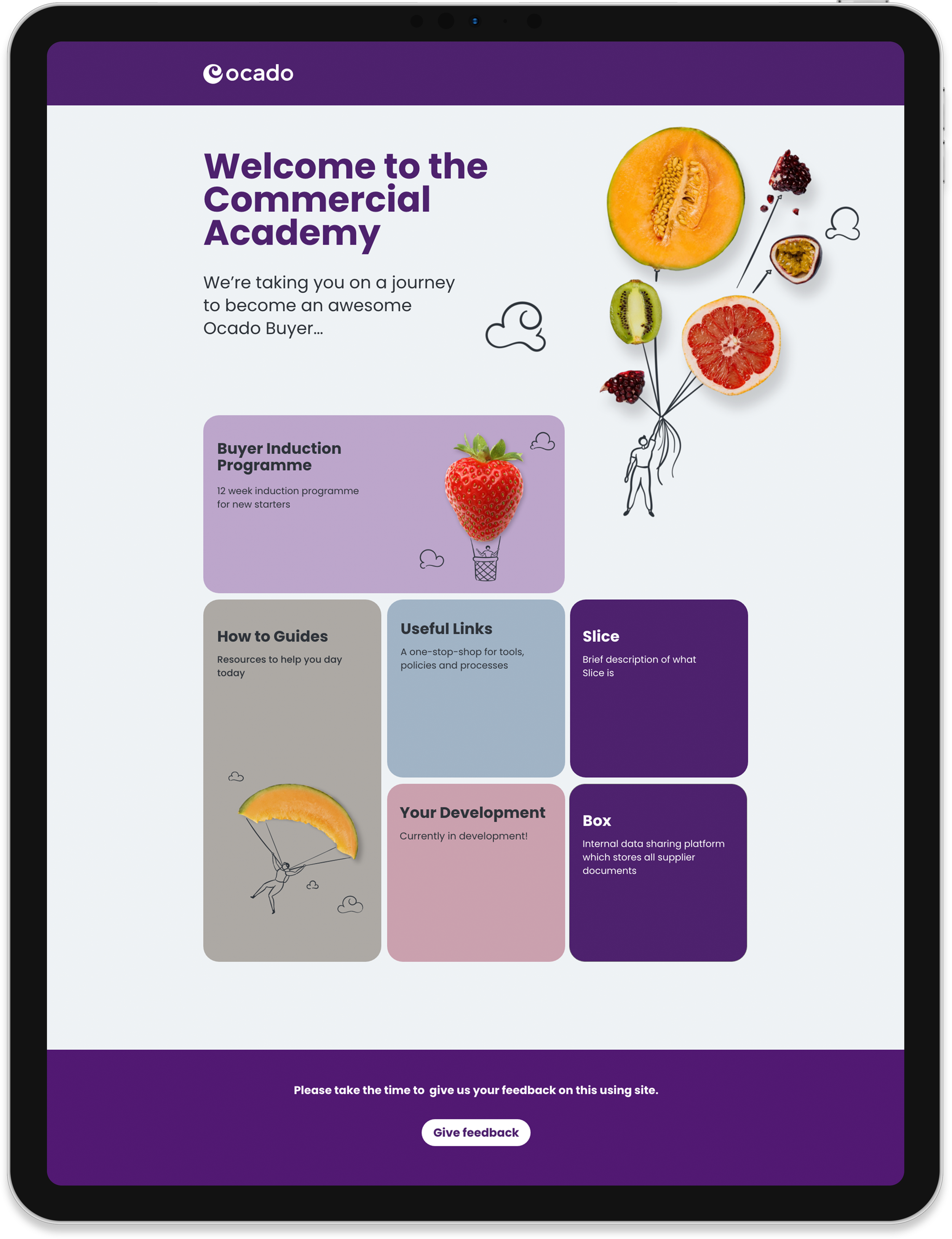 Ocado Buyers is a digital learning product created for the Commercial Academy at Ocado Retail. The platform supports new buyers through a structured onboarding journey, combining a 12 week programme with digital resources to support long term development.
