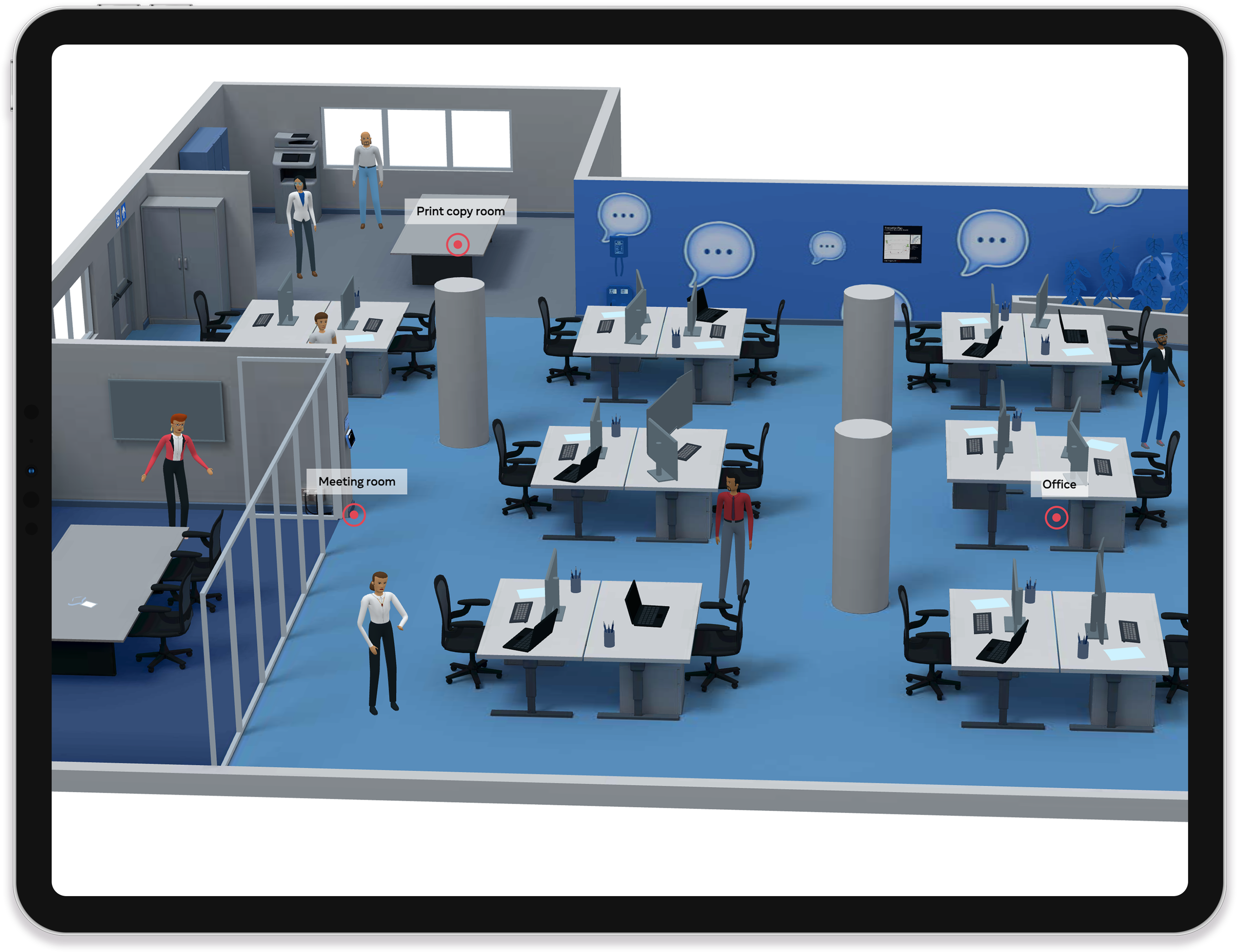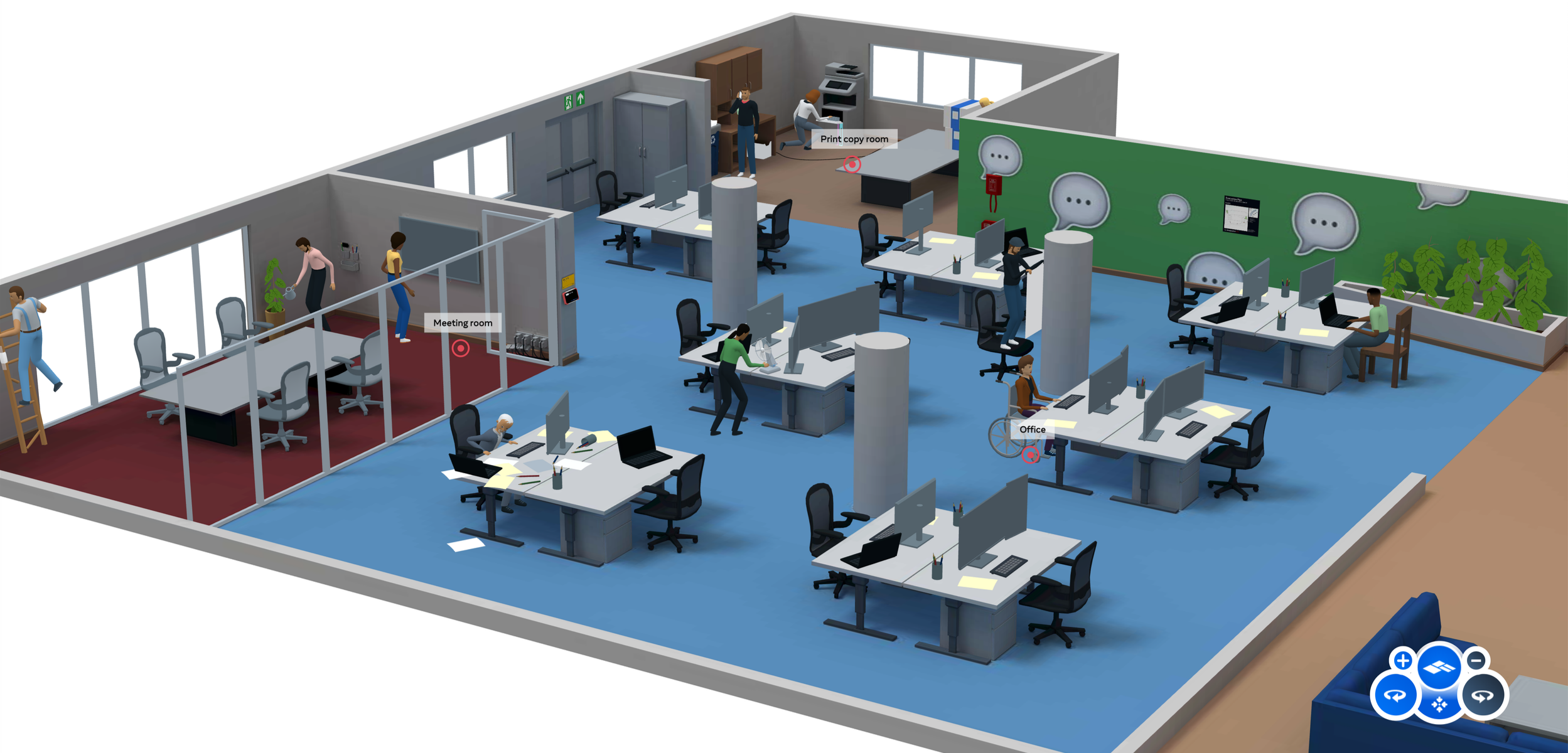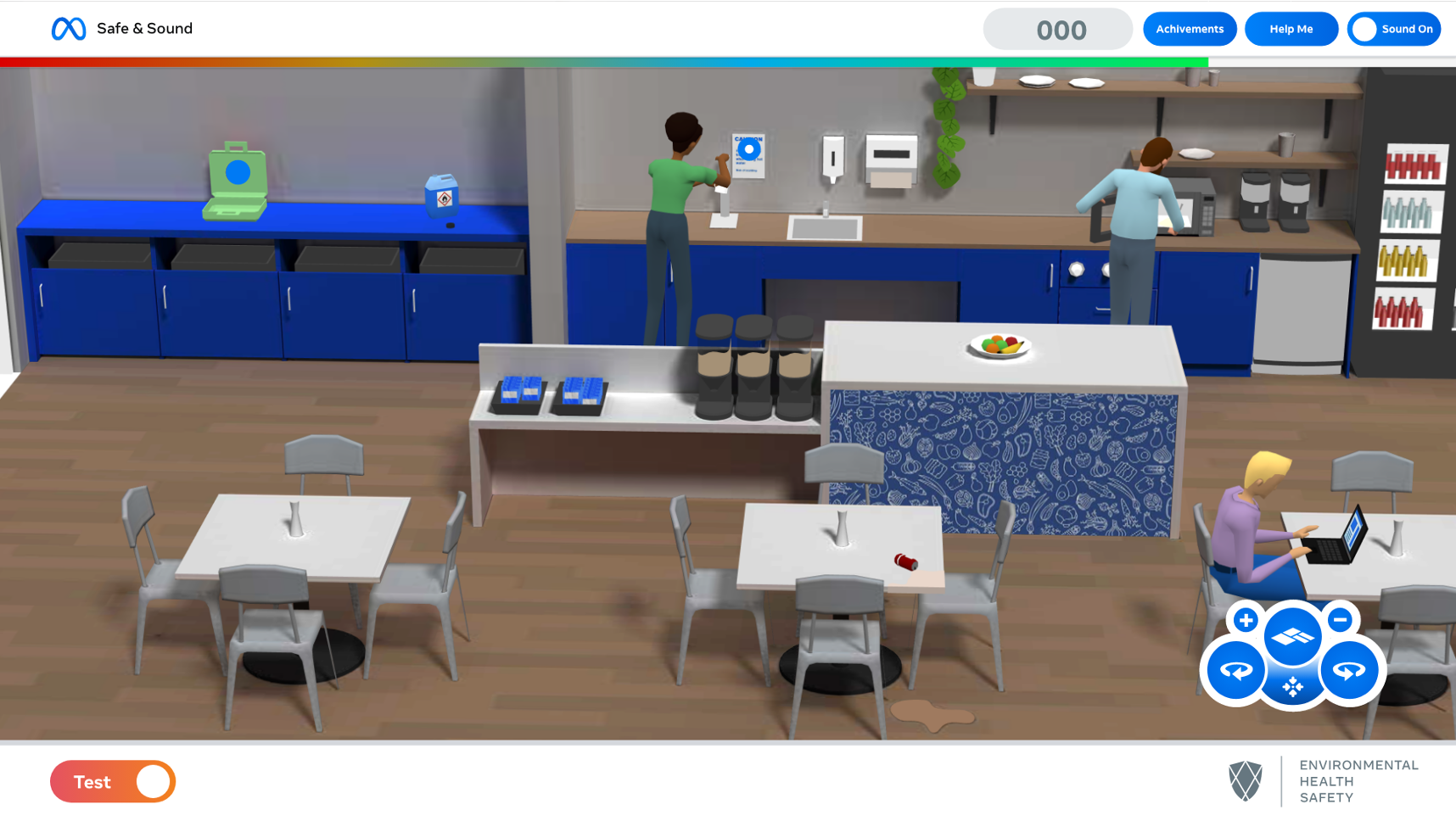 Safe & Sound is an immersive virtual learning experience designed to build health and safety awareness within a realistic workplace setting. Set in a virtual Meta office, the platform encourages active exploration and decision making around everyday safety risks.